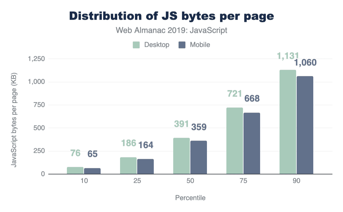 At every percentile, we’re sending slightly more JavaScript to desktop devices than we are to mobile.