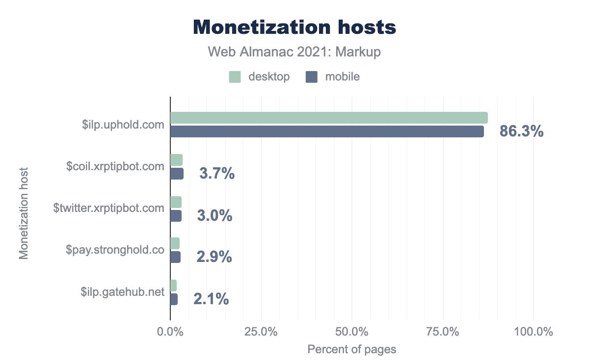 While it still seems a vanishingly small number by percentages, it has shown growth—more on desktop than mobile. It’s important to keep in mind how big the HTTP Archive dataset is and how slowly it takes to gain numbers, even for a feature that is widely and natively supported. It will be interesting to continue to track these numbers and developments over more time. This author might be biased, as an editor for the Web Monetization standard, but you’re encouraged to give it a try, it’s free.