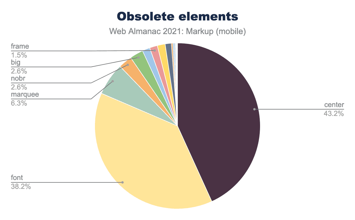 Every year since 2019, the Markup chapter of the Web Almanac has featured the most frequently used elements in reference to Ian Hickson’s work in 2005. This author couldn’t break with tradition, so we had a look at the data again.