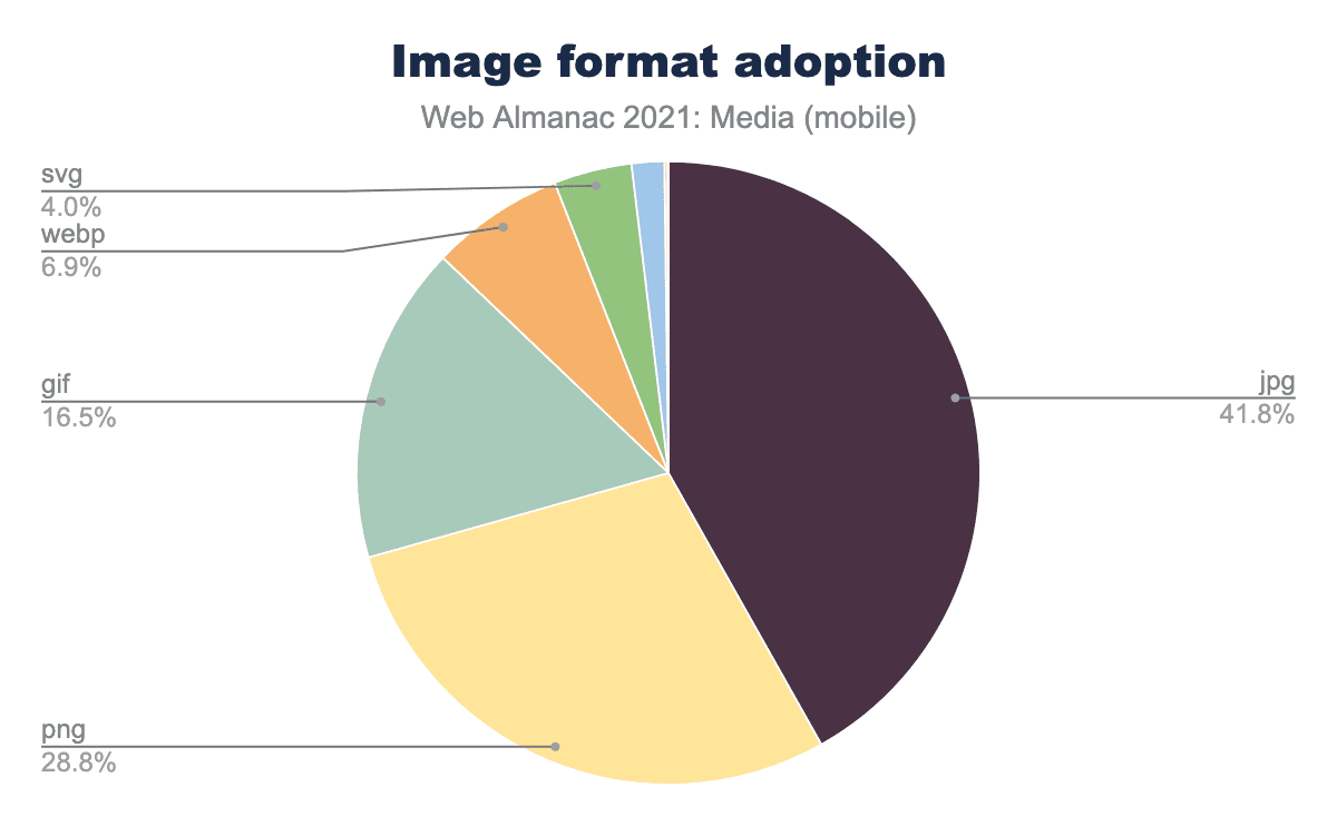 For an in-depth analysis of how (and educated guesses as to why) WebP and AVIF adoption has changed over time, the best resource is Paul Calvano’s excellent recent talk at ImageReady (full video and slides 13-15). In it, he shows that WebP adoption increased by ~34% from July 2020 (when Safari added support) to July 2021. AVIF’s numbers have risen even more rapidly, in percentage terms, though perhaps that’s not surprising given that the format is still brand new and used by relatively few sites. A few large players adopting AVIF was all it took.