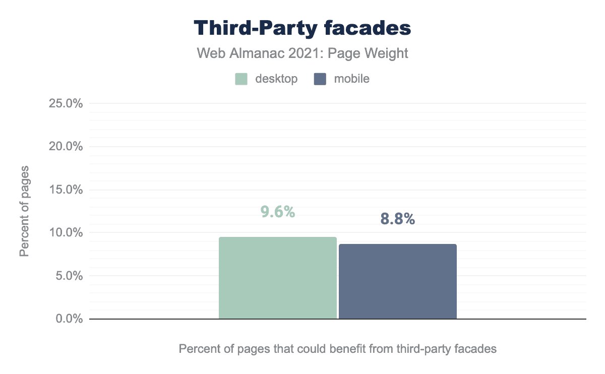 9.6% of desktop pages tested could have benefited from implementing a facade, a slightly better 8.8% for mobile visits.