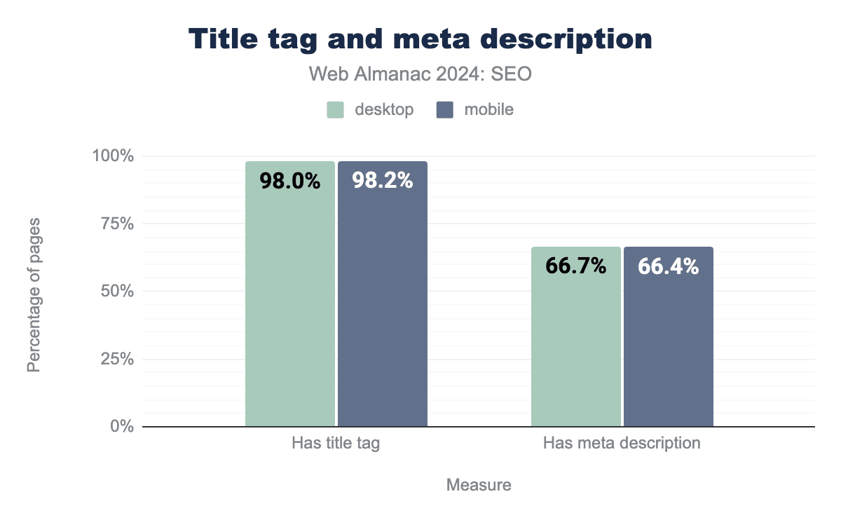 The two years between the last Web Almanac SEO chapter in 2022 and this year’s edition may seem like a long time in SEO, which is often a fast-moving field. However, the data shows incremental changes to the fundamentals have been slow-moving.